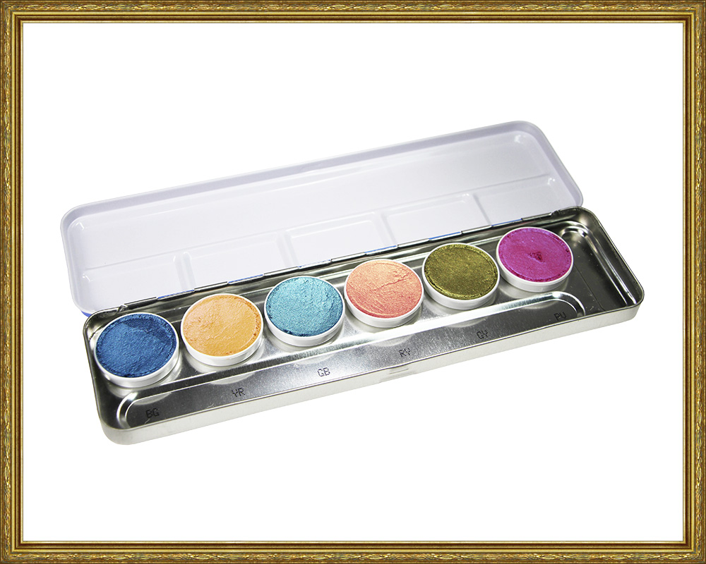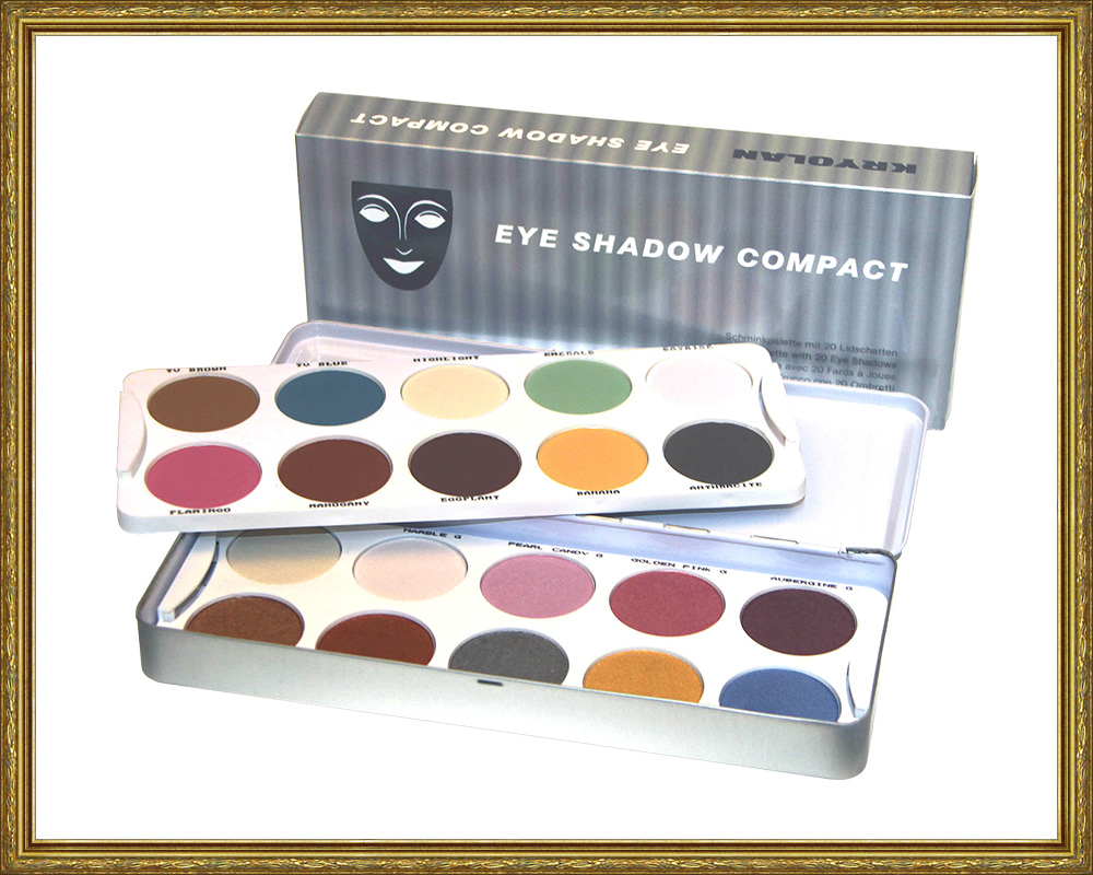 Klassisk plåtpalett.Torra skuggor för ögon, rouge och shading.